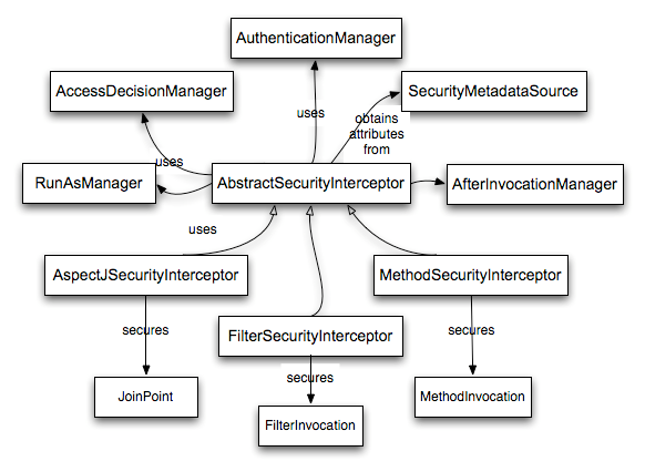 각각의 Secure Object는 AbstractSecurityInterceptor 을 구현하여 가지게 되는데 동작은 다음과 같다.