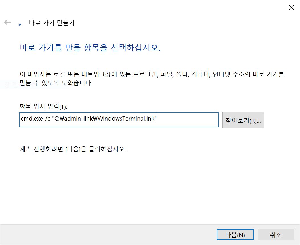 이제 이 바로가기를 통해서 Windows Terminal을 실행하면 항상 관리자 권한으로 실행되게 된다.